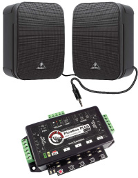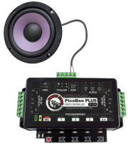 The PicoBoo PLUS comes with a 30 watt internal Class D amplifier so you can use standard speakers which are smaller and easier to hide in your props and around your scene.