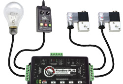 The PicoBoo PLUS has four 10 amp relay outputs brought out to two pluggable terminal blocks. Each outputs has both a normally-open and normally-closed contact so you can control just about anything.