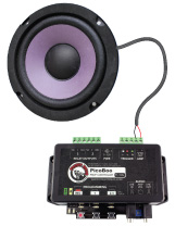 PicoBoo actually features a 30 watt internal Class D amplifier on-board so you can use smaller and easier to hide standard speakers instead of bulky powered speakers. This makes the PicoBoo an incredibly useful controller for building props with sound.