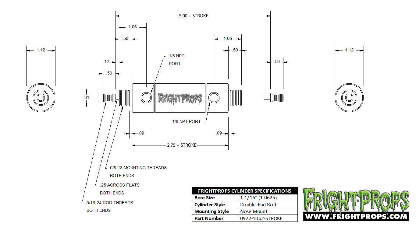 | 1-1/6 | 5/8-18 | 5/16-24 | .25 | 1/8 NPT | |