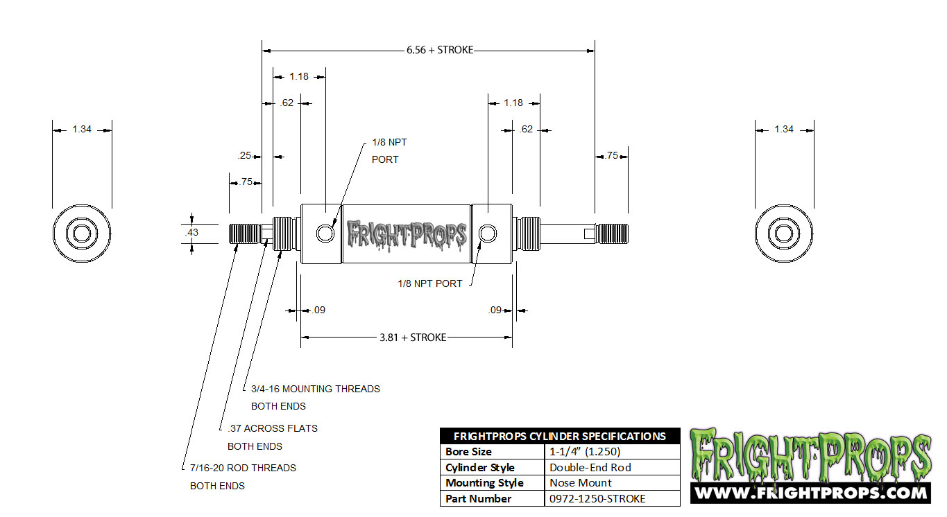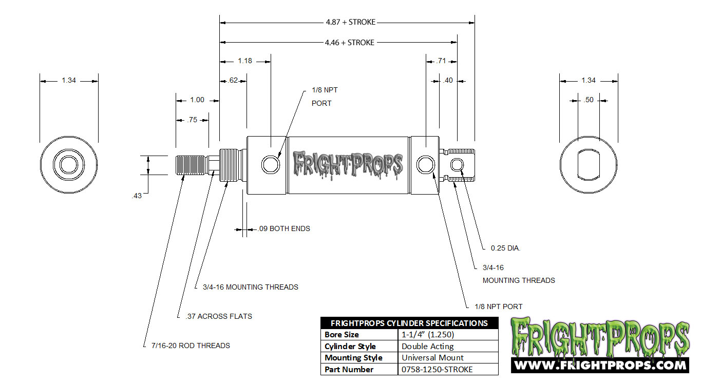 | 1-1/4 | 3/4-16 | 7/16-20 | .25 | 1/8 NPT | |