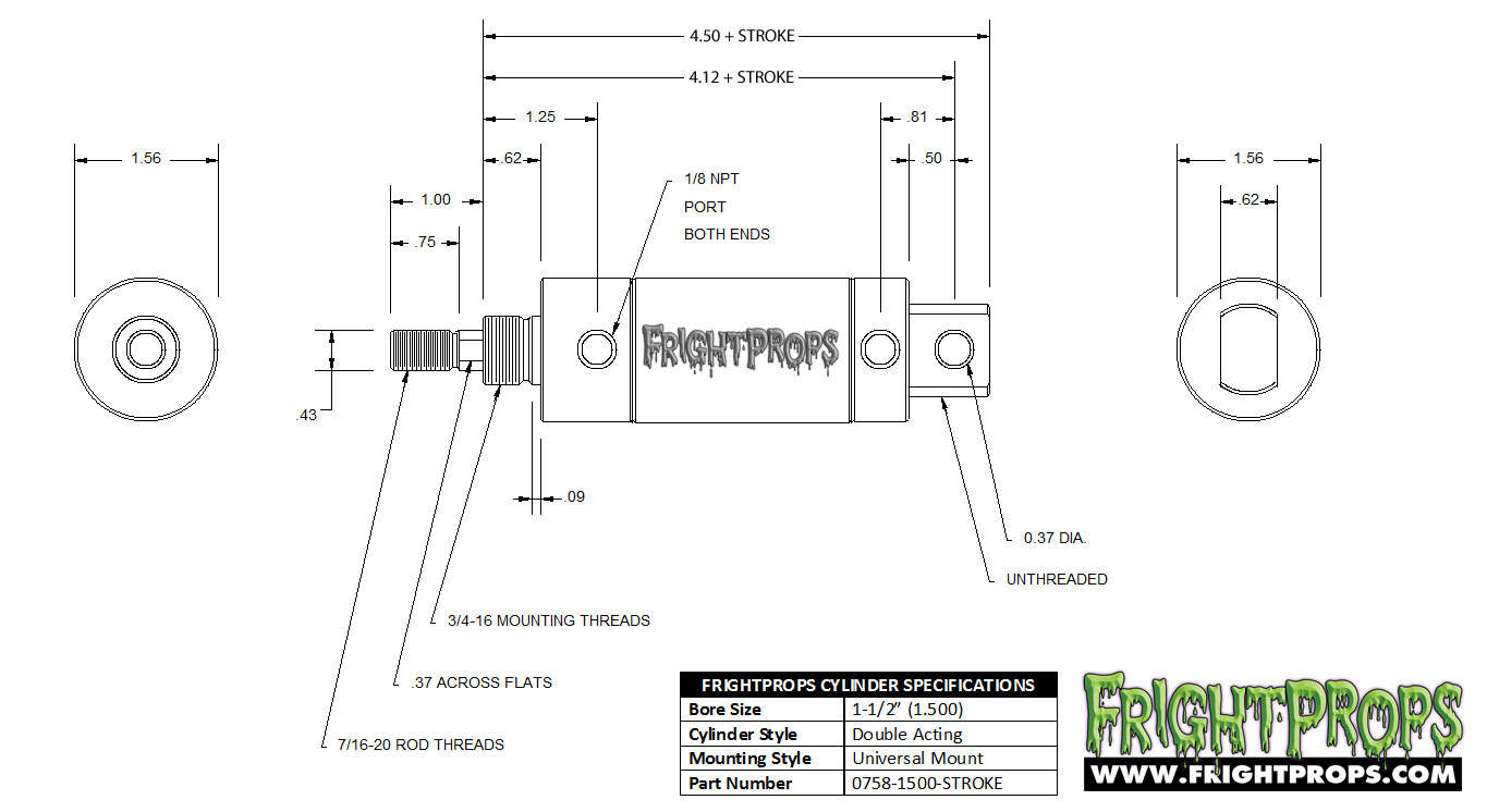 | 1-1/2 | 3/4-16 | 7/16-20 | .37 | 1/8 NPT | |