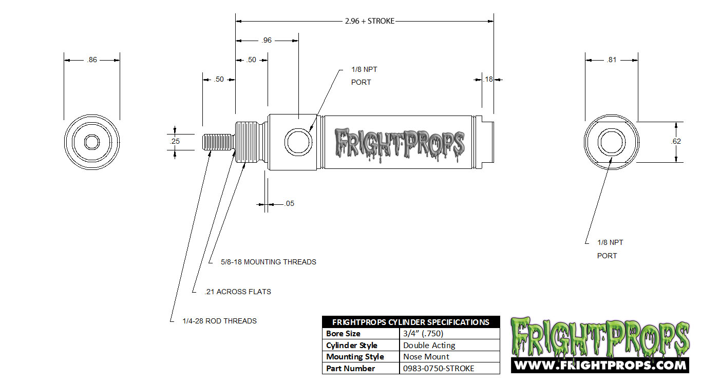 | 3/4 | 5/8-18 | 1/4-28 | .25 | 1/8 NPT | |