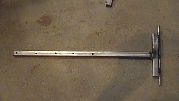 Take your left over, extra long piece of 3/4inch square tubing and cut it to whatever length you want the arm of your flipper rig to be (length in the photo is 18inches). Go ahead and drill some holes in it. These will be the holes you will attach your prop or pieces of wood to.