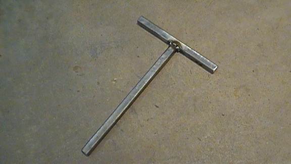 While you’re still at the welder, cut a 6inch and a 8inch (measurements don’t need to be exact) and weld them into a T-shape. This is what you’ll attach your prop to later on, and the shape offers many ways to do so.