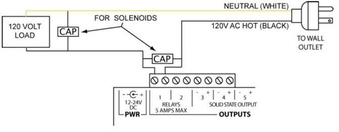 Solenoids and Large Relays create a lot of interference, this can wreak havoc to nearby electronic devices. If you notice the sound is stopping unexpectedly when controlling one of these devices this is most likely your problem. For AC solenoids you need to use a capacitor, the best place to install it is as close as possible to the solenoid, if that's not possible then across the terminal block on the controller may work as well. You can get these capacitors from FrightProps.
