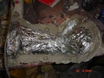 Continue coating all areas of tin foil. Work fast! You only have about 10 minutes before it sets up.