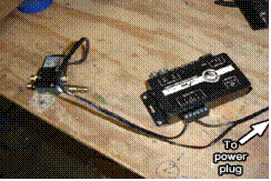 Start with an AC device that has a power plug on it. Shown here is a 110v AC solenoid with an AC power plug (the actual plug is hard to see in this picture). These steps will also work with a lamp, motor, or any other 110v