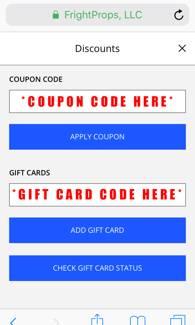 *Please note: You do not have to add gift card codes in your store account. You can enter them in the fields provided on the shopping cart page.