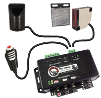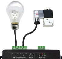 The PicoBoo JR has two 10 amp relay outputs brought out to a pluggable terminal block. The two relays provide the ability to control different voltages - use one to activate a light and have another work with a 12 volt solenoid. Each of the relays has both a normally-open and normally-closed contact.