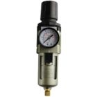 In / Out port size is 3/8 NPT threaded female. Does not come with fittings for these two ports. Any 3/8 NPT male threaded fitting is appropriate such as our Male Connector Push-On Fittings.